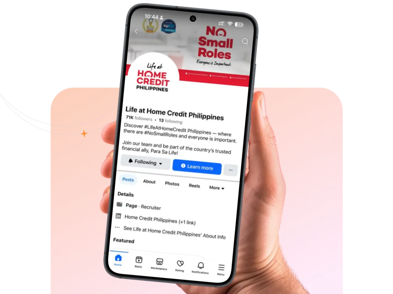 At Home Credit Philippines, we believe that everyone has something special to offer. Our motto "No Small Roles, Everyone is Important" is at the heart of everything we do. We think diversity makes our company better and every single job and person here plays a big part in our success.