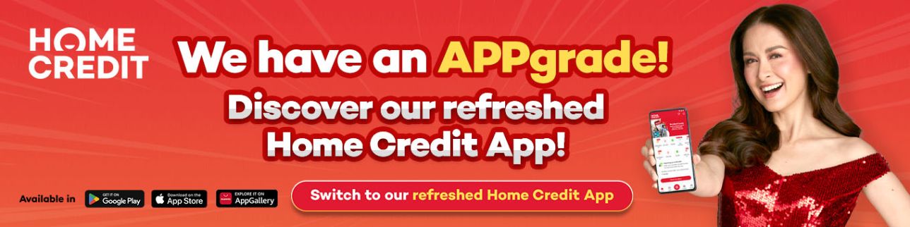 Experience the refreshed Home Credit App! Download it from the Apple App Store, Google Play Store and Huawei App Gallery.